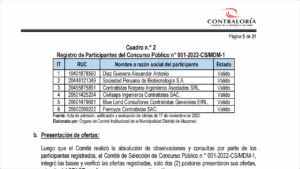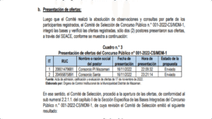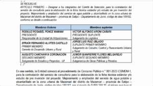 20/10/2025  – Una seria irregularidad ha sido detectada en el proceso de contratación pública llevado a cabo por el Comité de Selección de la Municipalidad Distrital de Mazamari, en el marco del Concurso Público N.° 001-2022-CS/MDM-1, cuyo objeto fue la consultoría para la elaboración de la ficha técnica estándar y/o estudio de preinversión del proyecto de mejoramiento y ampliación del servicio de agua potable y alcantarillado en la zona urbana de Mazamari, con código de idea 189182.